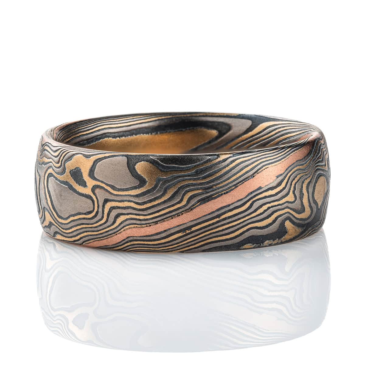 Customization options available! All Arn Krebs Mokume Gane Rings are CUSTOM and made-to-order. Rings are available in any size, width, profile, pattern, metal combination and finish. All rings are made individually from start to finish, so each one is completely unique and will vary slightly from what is pictured. Variations in color and patterning are natural features of Mokume Gane and photos shown are for illustration purposes only.