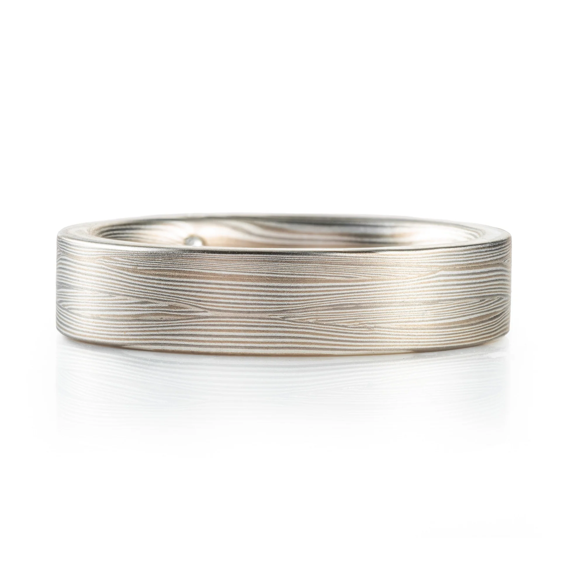 Customization options available! All Arn Krebs Mokume Gane Rings are CUSTOM and made-to-order. Rings are available in any size, width, profile, pattern, metal combination and finish. All rings are made individually from start to finish, so each one is completely unique and will vary slightly from what is pictured. Variations in color and patterning are natural features of Mokume Gane and photos shown are for illustration purposes only.