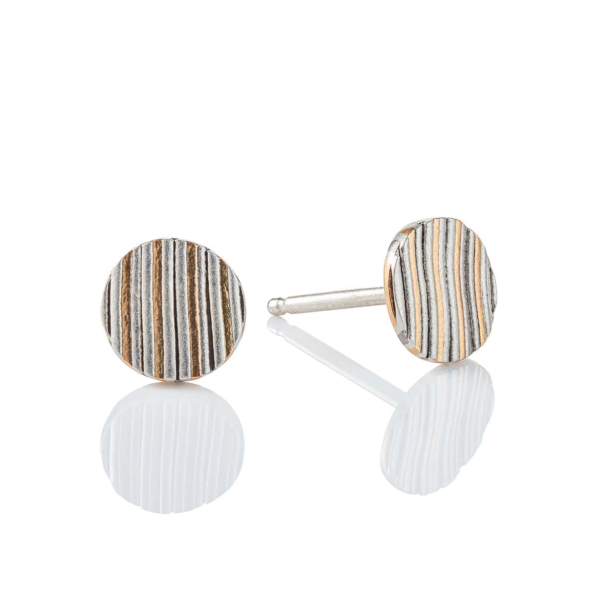 The silver layers are etched lightly to create valleys and lower patterns in the mokume. Giving the surface some texture and adding visual contrast.