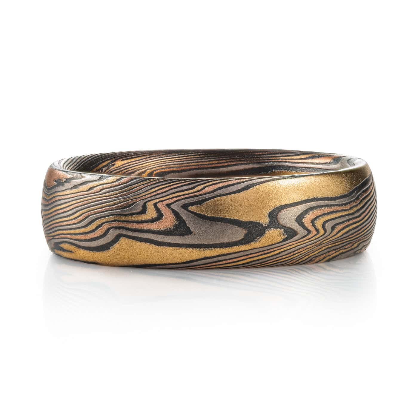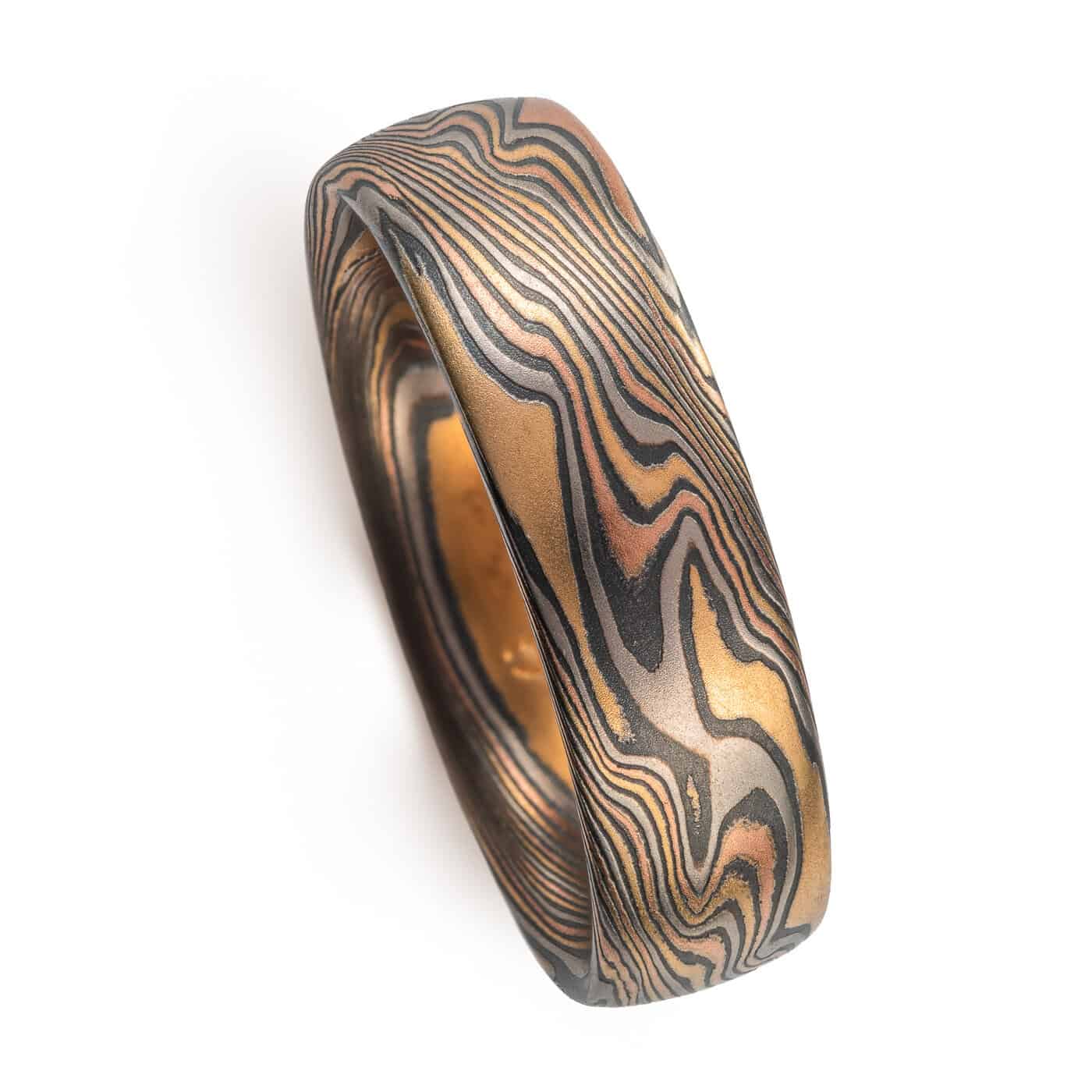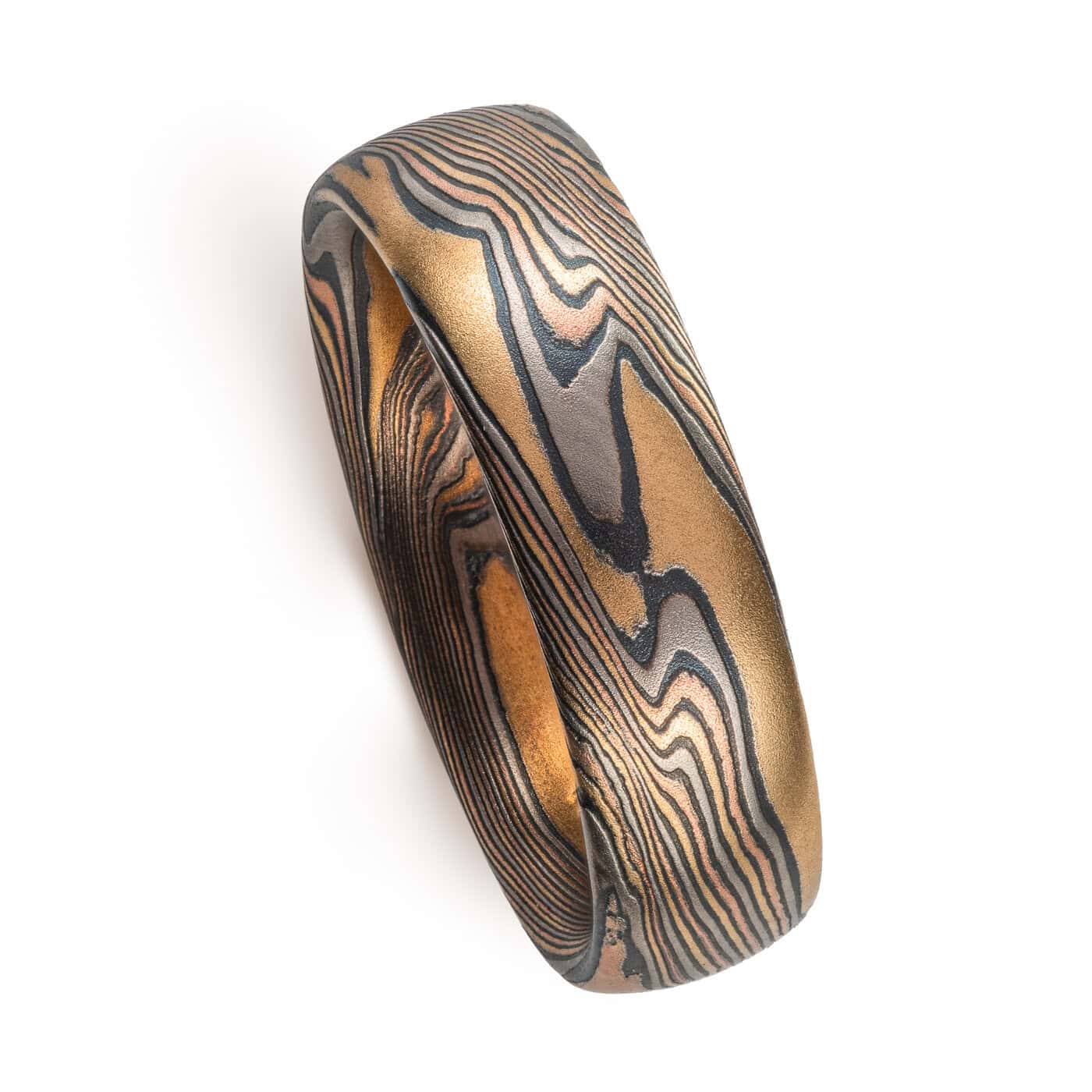 Customization options available! All Arn Krebs Mokume Gane Rings are CUSTOM and made-to-order. Rings are available in any size, width, profile, pattern, metal combination and finish. All rings are made individually from start to finish, so each one is completely unique and will vary slightly from what is pictured. Variations in color and patterning are natural features of Mokume Gane and photos shown are for illustration purposes only.