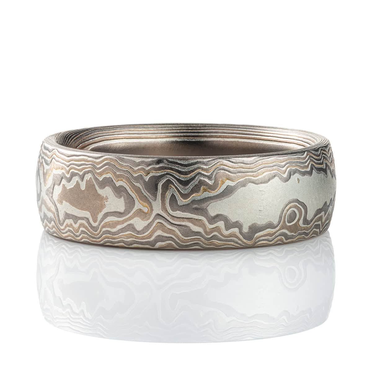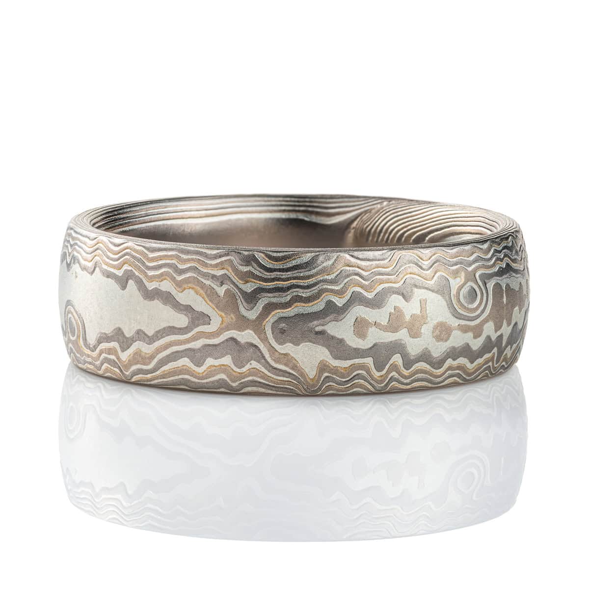 Customization options available! All Arn Krebs Mokume Gane Rings are CUSTOM and made-to-order. Rings are available in any size, width, profile, pattern, metal combination and finish. All rings are made individually from start to finish, so each one is completely unique and will vary slightly from what is pictured. Variations in color and patterning are natural features of Mokume Gane and photos shown are for illustration purposes only.