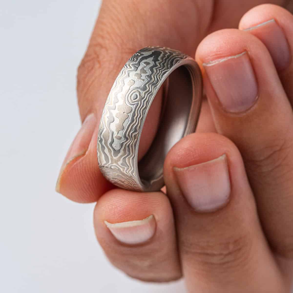 Palladium and Silver Mokume Curly Woodgrain Ring