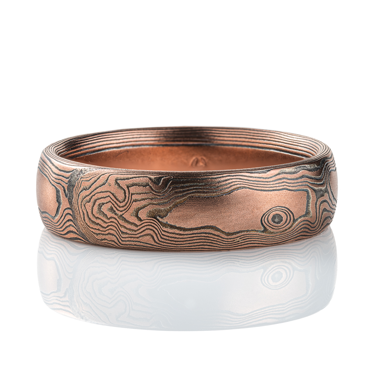 Customization options available! All Arn Krebs Mokume Gane Rings are CUSTOM and made-to-order. Rings are available in any size, width, profile, pattern, metal combination and finish. All rings are made individually from start to finish, so each one is completely unique and will vary slightly from what is pictured. Variations in color and patterning are natural features of Mokume Gane and photos shown are for illustration purposes only.